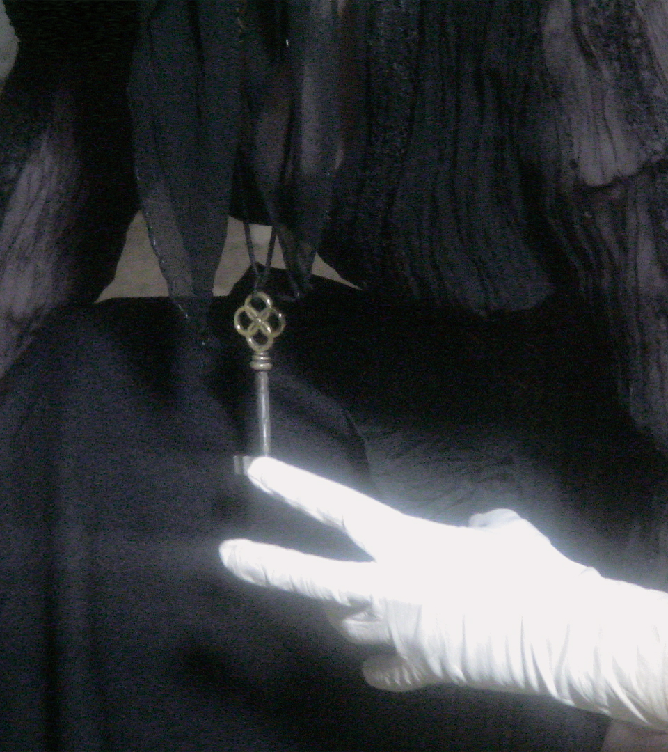 Alice resta tapie dans l’ombre un moment avant d’apercevoir la clé autour du cou de l’enchanteresse. Alice retint son souffle, priant pour que cette dernière ne la découvre pas.